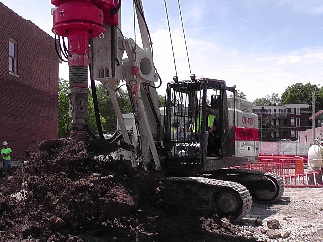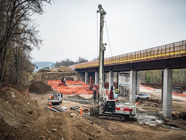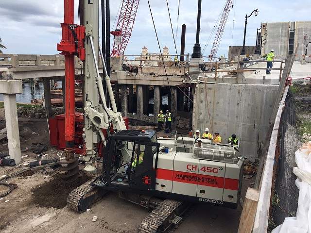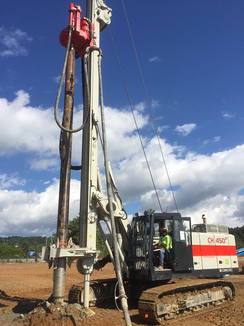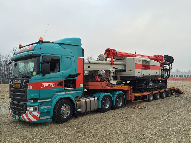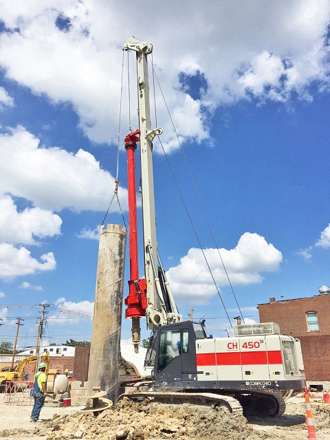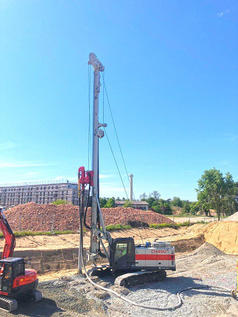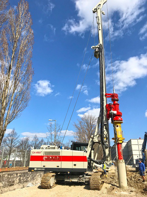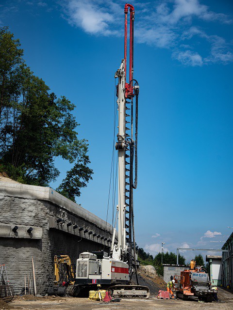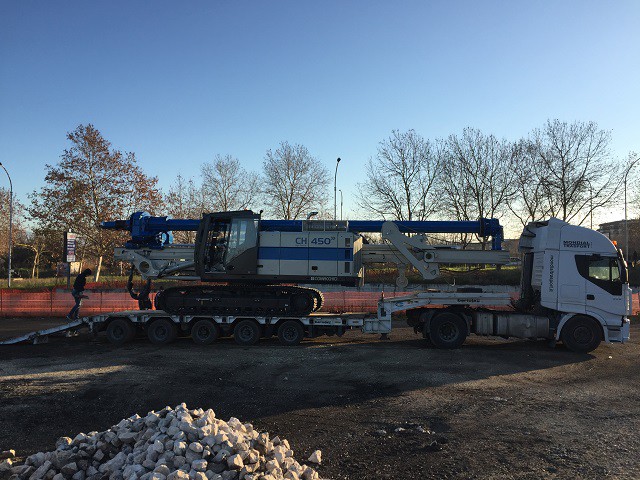 The CH 18 is the first Comacchio drilling rig for large diameter drilling. The CH 18 is the ideal solution for job sites that require fast operating times. The machine is totally self-erecting, and can be transported in one piece with the kelly mounted. Once in place, the machine is easily downloaded from the truck and set up without the need for crane service. Lifting of the mast takes a few minutes and can be performed in complete safety. The CH 18 is designed to cover a wide range of processes that include bored piles, continuous flight auger (CFA piles), micropiles, displacement piles and soil mixing. The machine can be supplied in the CPD (cylinder pulldown) and WPD (winch pulldown) versions and can be equipped with kelly bars with a maximum length of 13.0 to 13.5 m (CPD-WPD) and with different outer diameters, including HD (heavy duty) and XHD (extra heavy duty) bars.