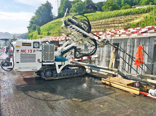 The MC 12 P is a versatile and powerful hydraulic drilling rig covering a wide range of engineering works such as micropiles, anchors, soil nailing and ground improvement in general. The rig’s patented mast articulation ability, compact size and variety of mast positions and inclinations allow for operation even in confined spaces. The oscillating tracked undercarriage equipping the MC 12 P ensures stability and maneuverability in any jobiste conditions. Thanks to the powerful engine and advanced modular hydraulic circuits, the MC 12 P can utilize a wide range of rotary heads, hydraulic drifters, double head systems, water and mud pumps and is suitable for rotary or rotary-percussive drilling. The machine can be equipped with hydraulic proportional servo-assisted controls or with radio control. Like all Comacchio rigs, the MC 12 P can be customized according to the specific needs.