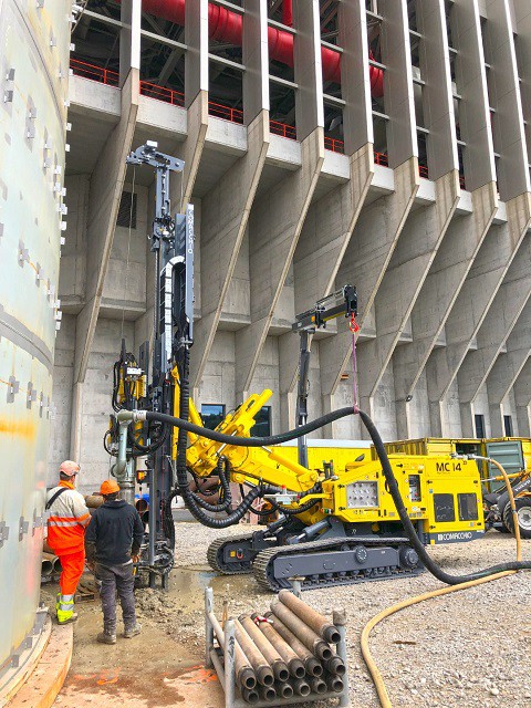 Born in 2008, the MC 14 is a high performance hydraulic drilling rig designed for civil engineering works such as micropiles, anchors and general ground improvements. In 2021 the rig has gone through a ground up redevelopment process based on the introduction of a new patented undercarriage. The new MC 14 features an innovative undercarriage offering enhanced stability and manoeuvrability on uneven ground while keeping the rigs width within a minimum of 1800 mm. The rig’s mast articulation ability, compact size and variety of mast positions and inclinations allow for operation even in confined spaces. The powerful engine allows for the installation of a wide range of drill heads and accessories. The result is that the MC 14 can perform a wide range of drilling technologies, with a special focus on double head drilling (both in rotary/rotary mode and rotary/rotary‐percussion mode). The enhanced stability and mobility required while operating with such heavy drilling systems is achieved through the new patented undercarriage, making the MC 14 ideally suited for demanding anchoring and slope stabilization projects in unstable ground conditions. The standard features of the MC 14 include the innovative Comacchio radio control system, which can electronically manage all functions. Like all Comacchio rigs, the MC 14 can be customized according to the specific needs of the customer.