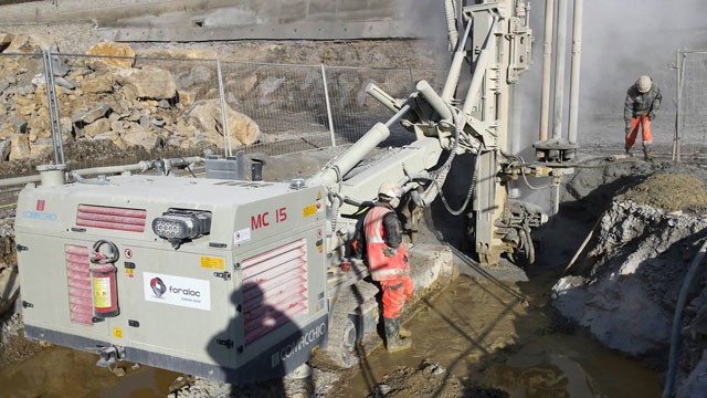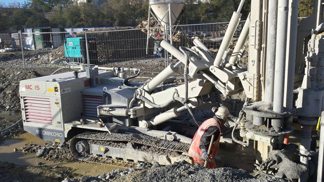 The MC 15 is a compact high-performance drilling rig designed for civil engineering works such as micropiles, anchors, jet grouting and consolidations in general. A distinctive feature of the MC 15 is the variety of movements and inclinations that it can perform thanks to its patented mast articulation, allowing it to be used even in confined or low overhead spaces. Equipped with advanced modular hydraulic circuits, the MC 15 can accommodate a wide range of rotary heads, hydraulic drifters, double head systems, water and mud pumps, winches and rod carousels and is suitable for rotary and rotary-percussive drilling. This machine can be equipped with hydraulic proportional servo-assisted controls or with radio control. Like all Comacchio rigs, the MC 15 can be customized according to specific needs.