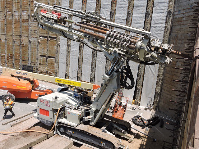 The MC 22A is the new MC 22 drill rig version featuring the innovative hydraulic rod & casing carousel. The machine is completely remote controlled, thanks to the unique Comacchio radio control system, which allows you to manage not only the tramming, drilling and machine set-up functions, but also to operate the hydraulic rod & casing carousel. The carousel is suitable for different rod and casing dimensions up to a maximum of 10 rods and 9 casings. The MC 22A is used mainly for anchor drilling and consolidations in general. Available with a wide selection of rotary heads, hydraulic hammers, double head systems, water and mud pumps, the MC 22 A is suitable for any type of rotary and rotary-percussive drilling.