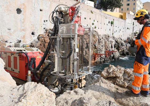 Its patented articulation system has been engineered to maintain a compact footprint while enabling operation with an on-board power pack in limited-access environments. At the same time, it offers an extensive range of positioning options and mast inclinations, including front-the-wall operation. Thanks to its modular mast design, the rig can be configured with drilling equipment best suited to the available height on site.