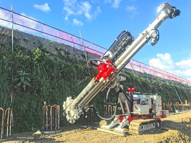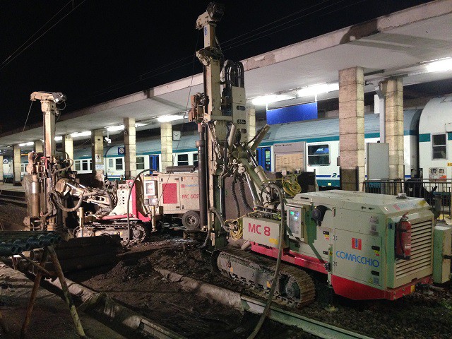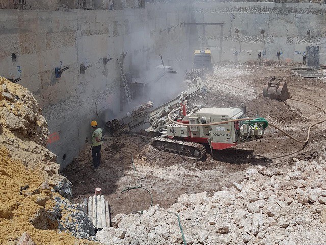The MC 8 is an extremely versatile and powerful small/medium size hydraulic drilling rig, designed for civil engineering works such as micropiles, anchors, jet grouting and consolidations in general. The patented mast articulation abilities, compact size and large variety of movements and inclinations make the MC 8 suitable to be used even in very small spaces. Equipped with advanced modular hydraulic circuits, the MC 8 can accommodate a wide range of rotary heads, hydraulic drifters, double head systems, water and mud pumps and is able to perform any type of rotary and rotary-percussive drilling. The machine can be equipped with hydraulic proportional servo-assisted controls or with the innovative Comacchio radio control system. Like all Comacchio rigs, the MC 8 can be customized according to specific needs.