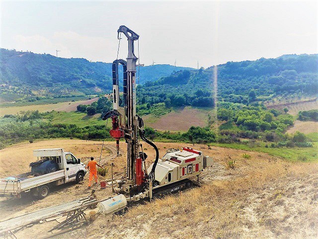 The GEO 900 was conceived as a mid-size hydraulic drilling rig for geotechnical works. This rig incorporates a particularly flexible design and accommodates many different accessories, which has allowed for an extremely diversified technical evolution of the GEO 900 over the years, including fields other than geotechnical engineering. Currently the GEO 900 is one of the most versatile models of the Comacchio line covering a large spectrum of activities related to geotechnical investigation, environmental studies and monitoring. These include soil investigations carried out with destructive and non-destructive coring techniques, Sonic technology, but also ground engineering works with the use of both rotary and/or rotary-percussive drilling. Due to the high mast pull force and rotary head torque output, the GEO 900 is also perfectly suitable for water well drilling and the installation of geothermal borehole heat exchangers carried out with single string drilling (both with mud circulation and a down-the-hole hammer).