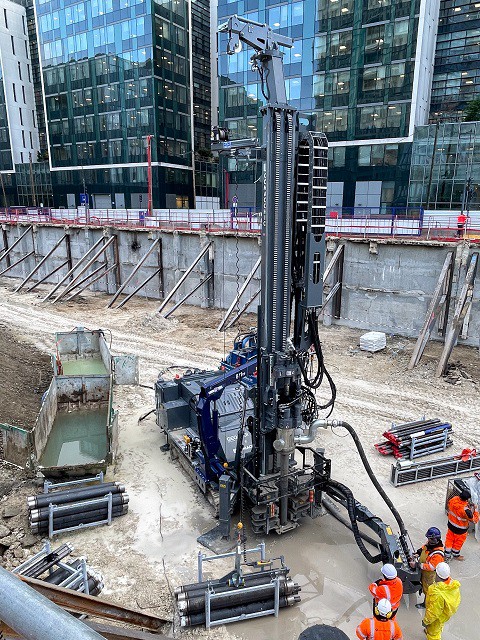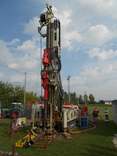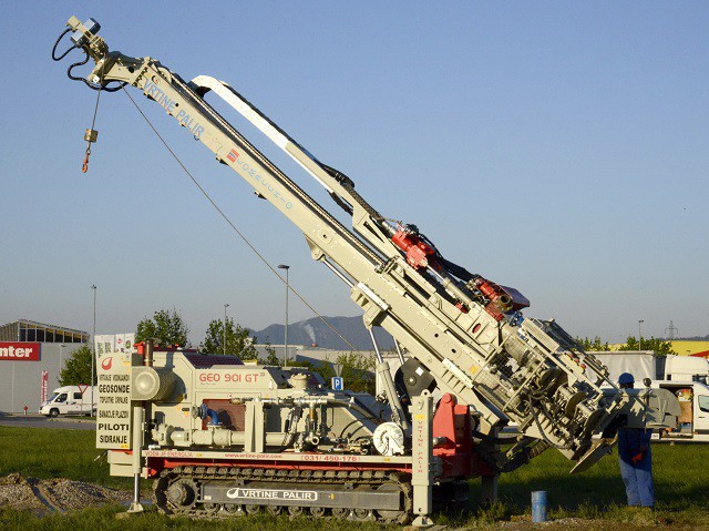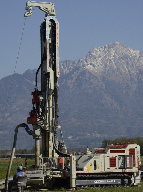 The GEO 901 GT version was designed to meet the needs of customers working in the field of geothermal engineering who wish to utilize a double head drilling system. This rig is particularly suitable for the installation of geothermal borehole heat exchangers in loose rocky terrains and soft soils such as clays and sands. The GEO 901 GT incorporates a double head kit which allows for the continuous movement and the counter-rotation of the two strings (rods and casings), providing a torque output on the lower rotary head up to 4800 daNm. The GEO 901 GT can be equipped with a wide choice of water and mud pumps, used for flushing spoils, and with rod and casing handling systems that facilitate the loading / unloading operations on site, minimizing processing times.