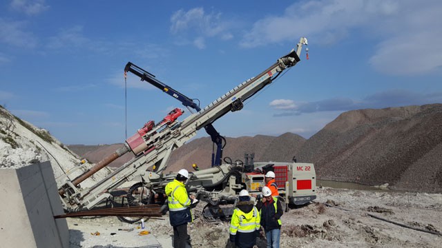 La MC 22 è la perforatrice simbolo della gamma Comacchio. Concepita nel 1997, la MC 22 è stata la prima perforatrice dotata dell’innovativo sistema di articolazione del mast Comacchio. La varietà di movimenti e inclinazioni raggiungibili grazie a questo sistema consente l’utilizzo della MC 22 per le più svariate opere di ingegneria civile (micropali, ancoraggi, jet grouting e consolidamenti in genere) anche in condizioni di spazio ridotte. Fornibile con una vasta scelta di teste di rotazione, martelli idraulici, sistemi doppia testa, pompe acqua e fanghi, caricatori aste, la MC 22 è in grado di operare ogni tipo di perforazione a rotazione o roto-percussione e può essere equipaggiata con comandi idraulici proporzionali servo assistiti o con radiocomando per le funzioni di traslazione, perforazione, posizionamento della macchina e caricatore aste. Come tutte le macchine Comacchio, la MC 22 può essere personalizzata in base alle specifiche esigenze.