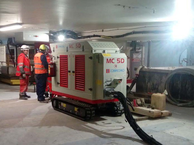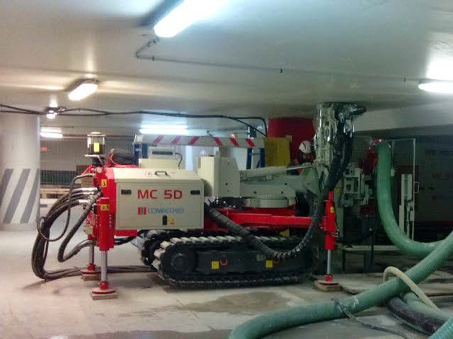 La MC 5D è una perforatrice idraulica con centrale separata, appositamente studiata per l’esecuzione di opere specializzate di ingegneria civile in spazi ristretti e di difficile accesso, all’interno di edifici, scantinati e gallerie di piccole dimensioni, grazie anche all’ampia gamma di movimenti di cui è dotata e al sistema telescopico del mast disponibile come optional. In base ai requisiti di cantiere, la macchina può essere fornita con centrale diesel insonorizzata o elettrica. Grazie all’utilizzo di circuiti idraulici modulari di concezione avanzata, la MC 5D può essere equipaggiata con un’ampia gamma di accessori ed è in grado di operare ogni tipo di perforazione a rotazione o roto-percussione. La macchina può essere dotata di comandi idraulici proporzionali servo assistiti o dell’innovativo sistema di radiocomando Comacchio. Come tutte le macchine Comacchio, la MC 5D può essere personalizzata in funzione delle specifiche esigenze.