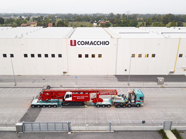 La CHF 900 è una macchina dedicata per pali CFA. Come tutte le macchine CH e CHF di Comacchio, la CHF 900 è stata progettata per essere automontante, può essere trasportata completamente assemblata, riducendo al minimo la necessità di smontaggio di alcune parti macchina in configurazione di trasporto, e consente quindi un rapido e facile cantieramento, anche grazie all’utilizzo di sistemi di rig-up automatizzati. Il peso, estremamente ridotto, è il risultato di un attento studio dei materiali, che ha determinato l’impiego di acciai leggeri ad alta resistenza e di lavorazioni meccaniche altamente specializzate. La geometria della macchina è determinata dall’utilizzo del parallelogrammo, che consente di raggiungere un ampio raggio di lavoro. La macchina è equipaggiata con un sistema a tiro in quarta che permette di realizzare pali CFA fino a 32,5 m di profondità, con eliche di lunghezza fino a 27 m e apposita prolunga. Il diametro massimo delle eliche è di 1200 mm. La rotary, anche questa dedicata per le lavorazioni CFA ed è in grado di raggiungere 256 kNm di coppia effettiva (280 kNm nominale) e una velocità di 40 rpm. La configurazione CFA è completata da numerosi accessori come il dispositivo guida eliche e il pulitore di tipo idraulico rotante, a spazzola o a stella.