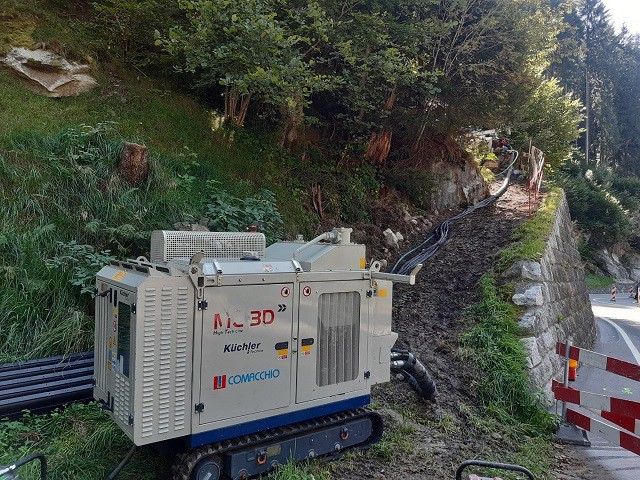 The MC 3D is a hydraulic drilling rig with a separate power pack, suitable for the execution of ground engineering works in confined or low overhead spaces and difficult access jobsites in general. This is possible due to the modular mast construction as well as the rig’s wide range of movements. Depending on the job site requirements, this machine can be supplied with a soundproof diesel power pack or with electric power pack. Thanks to the use of advanced modular hydraulic circuits, the MC 3D can accommodate a wide range of rotary heads and drilling accessories. The machine can be equipped with hydraulic proportional servo-assisted controls or with the innovative Comacchio radio control system. Like all Comacchio machines, the MC 3D can be customized according to specific needs.