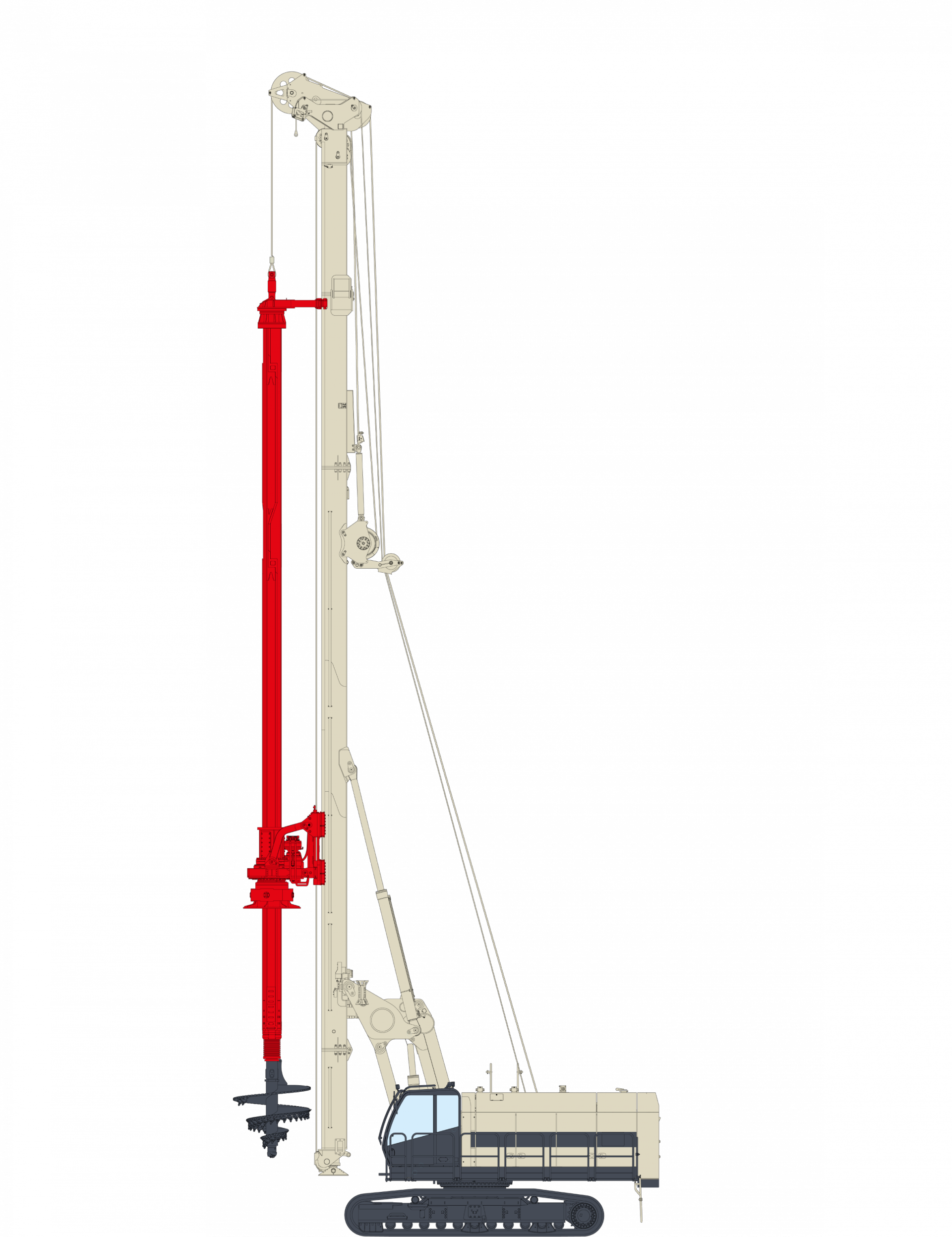 La CH 850 es una máquina de gran diámetro polivalente con un peso operativo de aproximadamente 90 toneladas. Con un par de hasta 360 kNm, la máquina destaca por su excepcional relación par/peso. La CH 850 está equipada con un tren de rodaje con ancho variable y orugas desmontables, que permiten reducir las dimensiones y el peso de transporte. El motor de última generación, combinado con un innovador sistema hidráulico, convierte a la CH 850 en una máquina de alta eficiencia, con las consiguientes ventajas en términos de consumo y emisiones. La CH 850 está diseñada para cubrir una amplia gama de operaciones, incluyendo pilotes perforados con barras kelly, pilotes de hélice continua (CFA), pilotes de desplazamiento y soil mixing. La máquina está disponible actualmente en la configuración WPD (Winch Pull Down) y puede equiparse con barras Kelly de hasta 445 mm, alcanzando una profundidad máxima de 90 m. La CH 850 se puede convertir para la perforación CFA, utilizando hélices de hasta 1200 mm de diámetro y alcanzando una profundidad máxima de 28 m.
