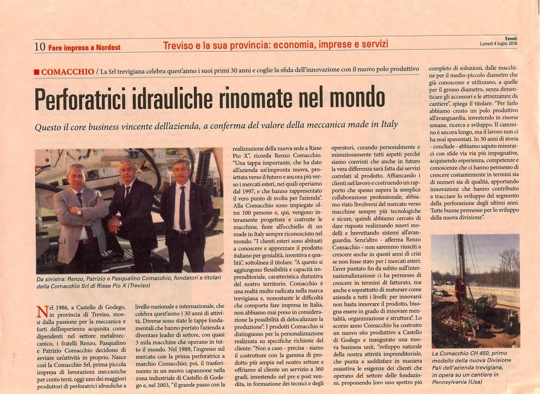 Innovative by Tradition: an article in the Italian Drilling and Special Foundations Magazine (PF) devoted to the history of Comacchio on the occasion of its 30th anniversary. (in Italian only)