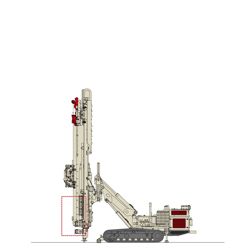 Mâts de forage installées sur pelles, conçus pour gérer des situations de travail particulières, où les conditions et les espaces de travail empêchent l’utilisation d’une foreuse sur chenilles conventionnel.