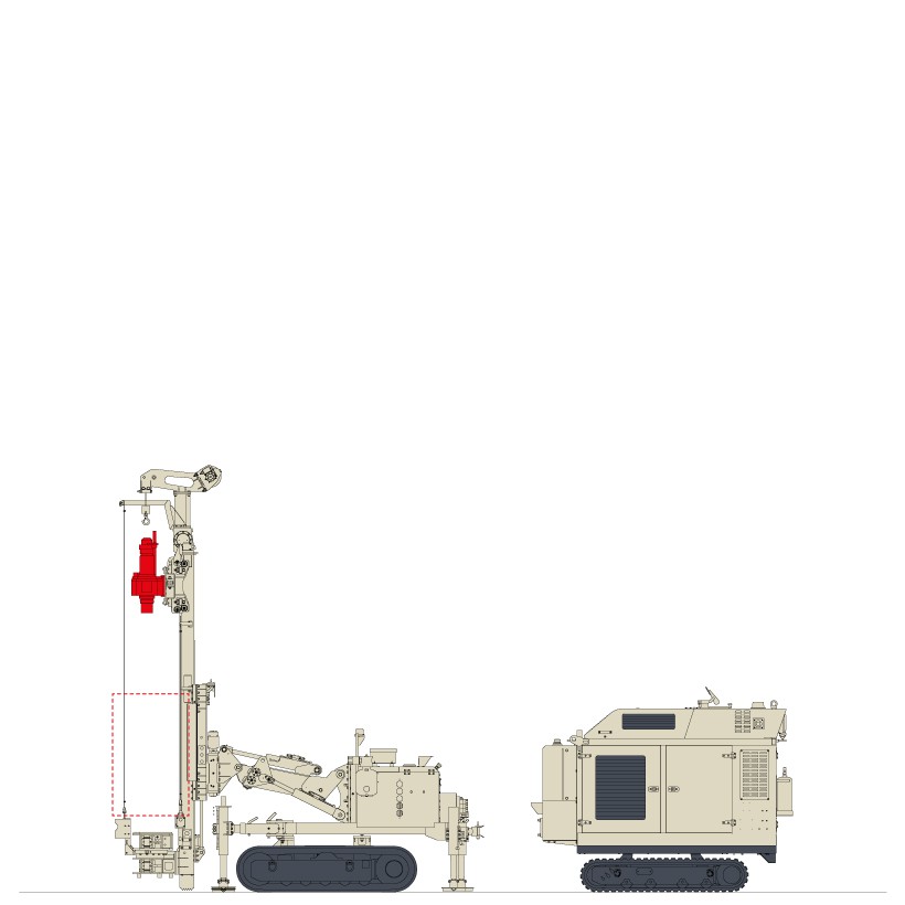 La MC 2D può utilizzate martelli a fondo foro da 2” a 4”, eliche e attrezzature per carotaggi.